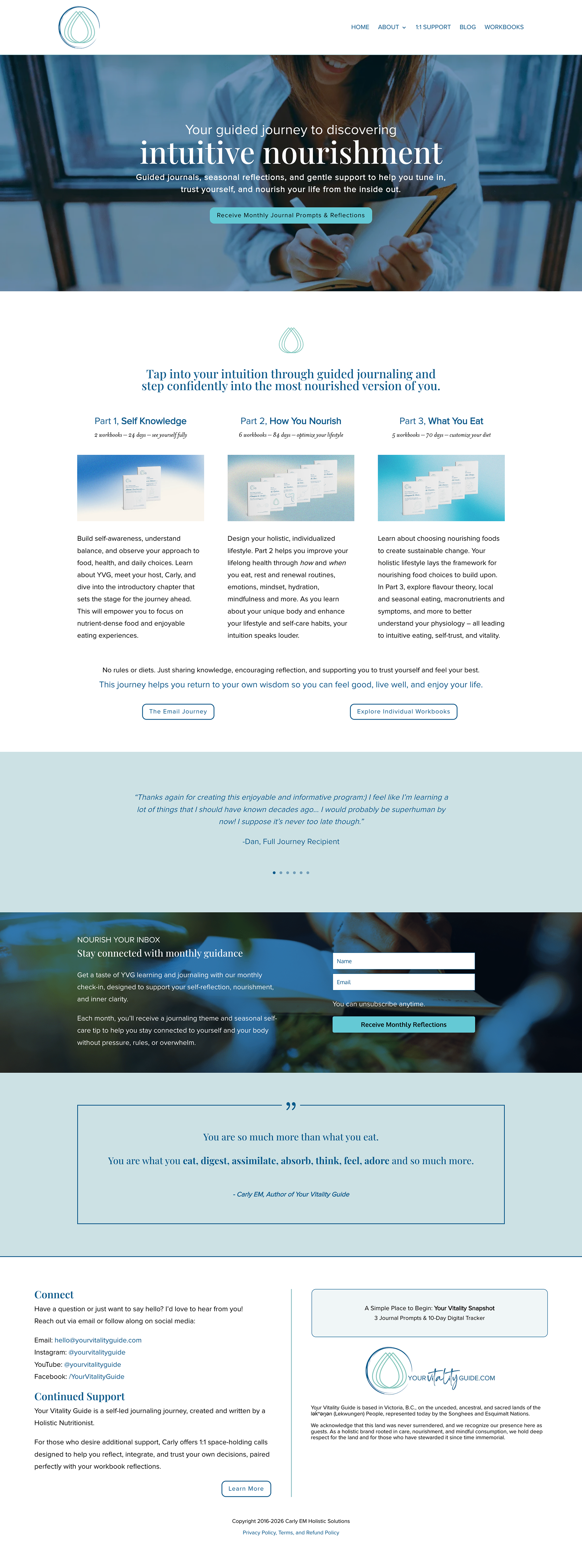 Your Vitality Guide is my original wellness education project, developed from my work as a Registered Holistic Nutritionist and creative technologist.
